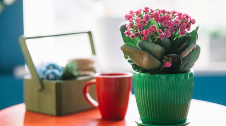 - Dacă masa este în interior, folosește o tavă sub ghivece pentru a colecta excesul de apă și a proteja mobilierul.